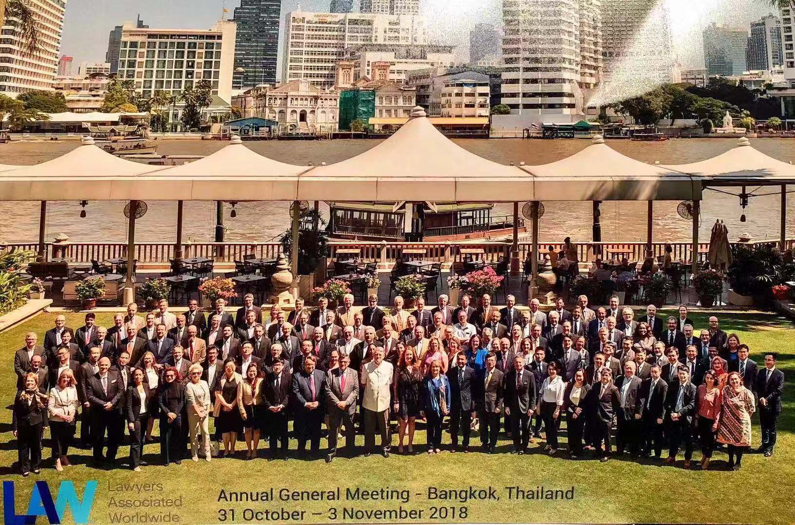 The annual general meeting of the Law↔∏σyers Associated Worldwide α₽×(“LAW”) was held in Bangkok, Th₩↔εailand from October 31, 2018 to No ♦vember 3, 2018. Over 130 delegates from®↔ nearly 100 law firms all over the wo€"™©rld attended the meeting.